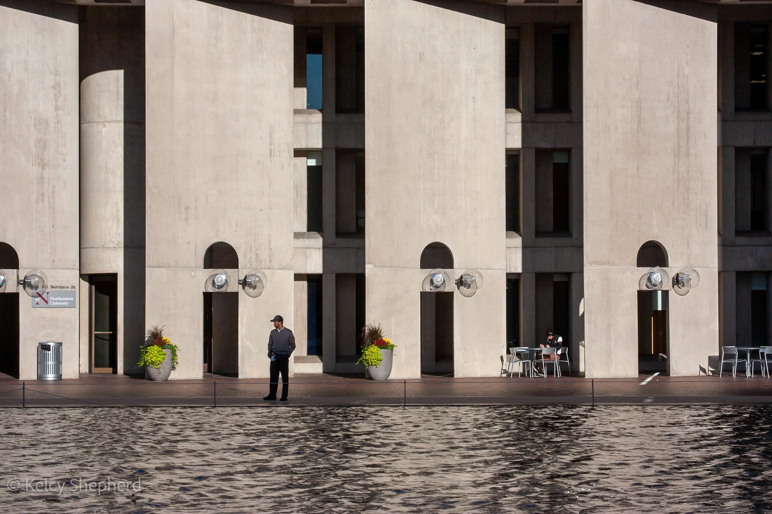 Security guard, Christian Science Center. October 2021. Boston, Massachusetts. Photo by Kelcy Shepherd. 1/320 f10 ISO 200 60mm